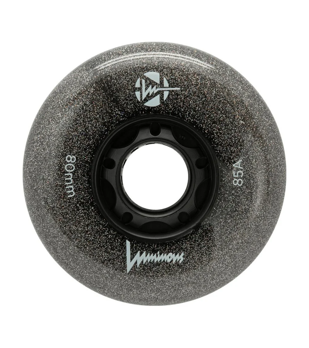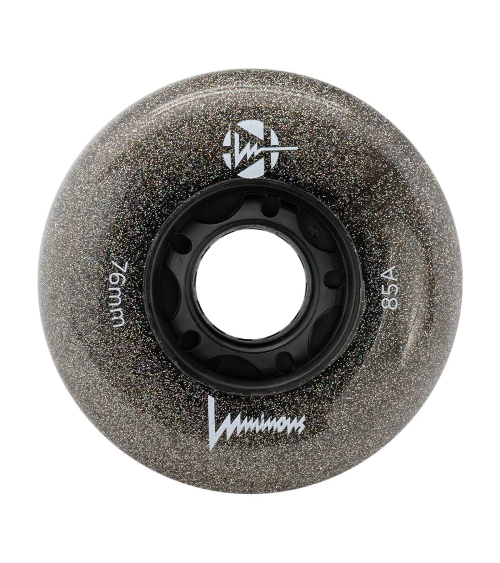 Ruedas LED luminosas color Cielo de noche, dureza 85A, vendidas en paquetes de 4. Ofrecen un elegante efecto luminoso oscuro, ideales para patinadores que buscan un estilo impactante y una visibilidad superior durante la noche.